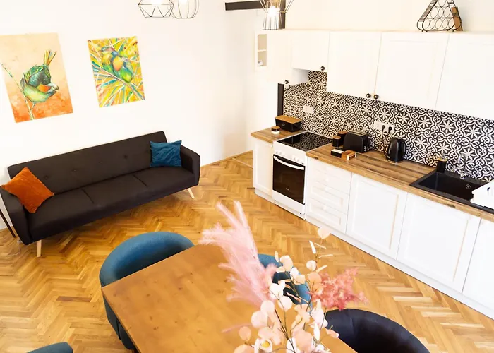 Art Home Eger van 55 m^2, gelegen op 1 km van het stadscentrum van Eger, biedt logeerkamers met uitzicht op de tuin. Sportliefhebbers kunnen aan wandelen en paardrijden deelnemen.